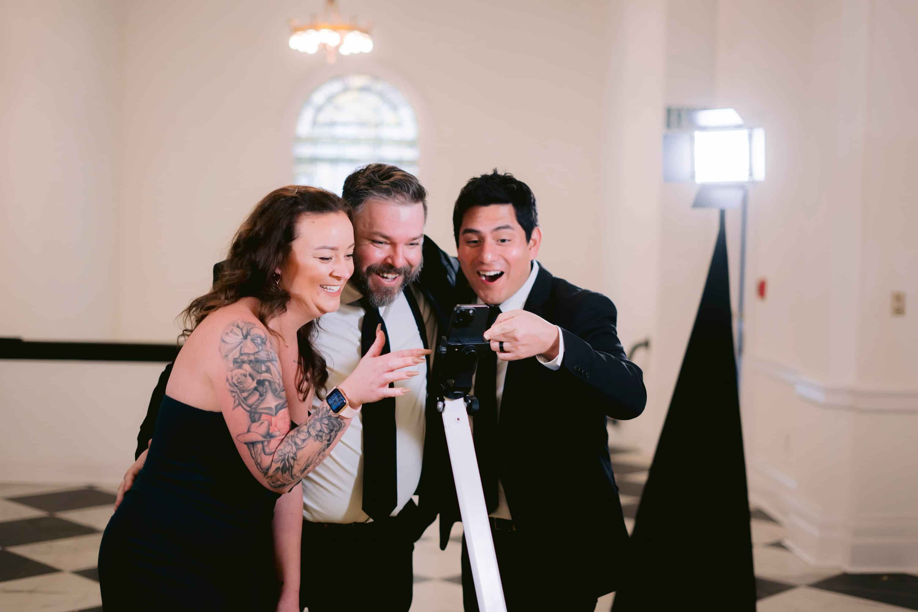This is our Kim-K B&W celebrity-style photo booth experience that makes everyone in the photo look like a million bucks.